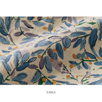 リーフプリントコットンシャツ ベージュ×ブルー系 LL