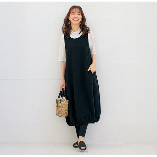綿100%裾バルーンワンピース ブラック LL