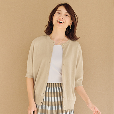 トップ > 衣料品・衣料雑貨 > シャイニーニット半袖カーディガン モカベージュ L
