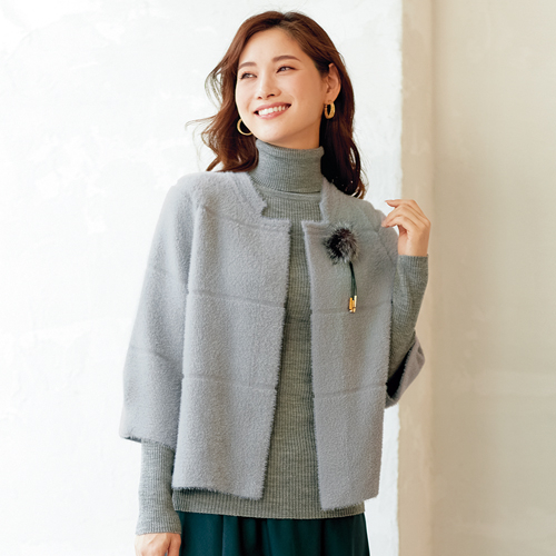 シャギーならではの優しい雰囲気で、装いを華やかに演出するニットガーディガン。ハイネックインナーやワンピースに羽織るだけで、おしゃれ感がアップします。