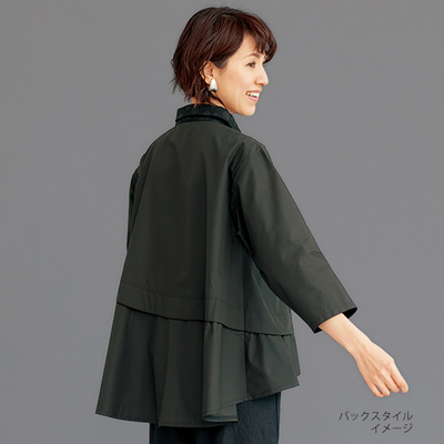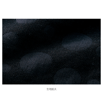 ジャカード織で表現したドットや、タック切替部分をボタン付きのフラップ使いにしたポケットなど、随所にこだわりをちりばめたモダンなデザイン。フレアーシルエットのゆとりある着心地も魅力です。