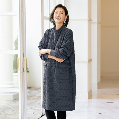 薄い中わた入りのキルティングは暖かく柔らかい着心地。