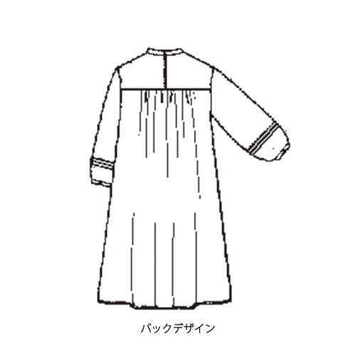 ぬくもりある微起毛の織生地を使用し、繊細な花レース&ピンタックを施した胸元からギャザーでゆとりあるフレアシルエットを演出。袖口にもピンタックをあしらって華やかに。