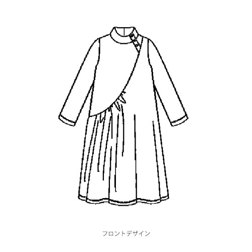 落ち感がきれいなストレッチジャージー素材を使用。左肩から右腰への切り替えラインに施したギャザーがドレープを生み出します。ネック部分に配した斜めのボタンがデザインポイントに。