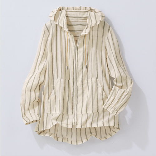 トップ > 衣料品・衣料雑貨 > 衣料品 > 先染めストライプ綿楊柳フード付ジャケット ベージュ系 LL