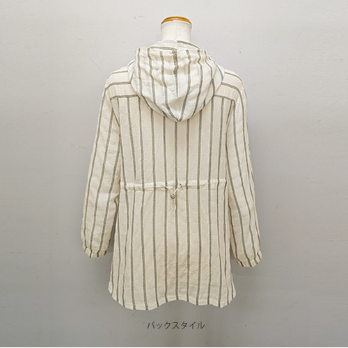 先染めストライプ綿楊柳フード付ジャケット ベージュ系 LL