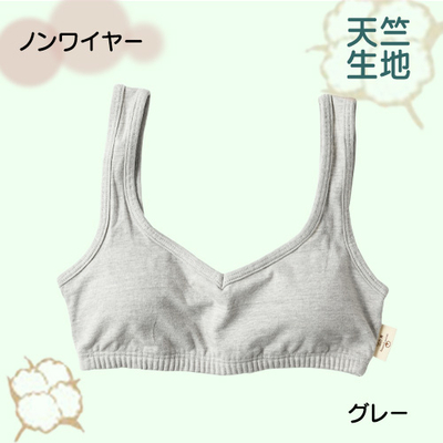 バスト部分もコットンだから 汗をしっかり吸収し、ノンワイヤーなのでつけ心地も快適。 フィットネスや就寝時などにもおススメ。伸縮性の良い天竺生地を使用しています。