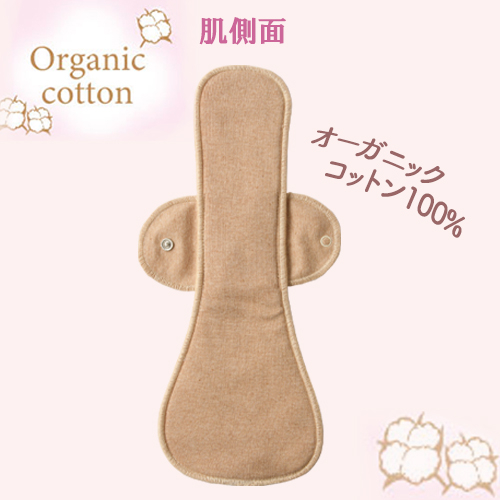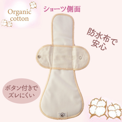 肌に触れる面はオーガニックコットン。 通気性が良くムレにくいため、かゆみや かぶれでお悩みの方にもおススメです。ホックでショーツに装着できるのでズレにくく、防水布を使用した安心設計です。