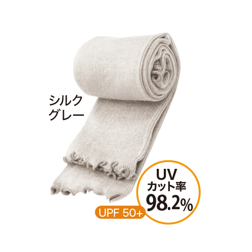 ●シルク100%(別途ゴム糸使用:ナイロン・ポリウレタン)●製品重量/30g●サイズ/フリー(丈:約56-60cm)※ふんわり編み立てているので±3cmの誤差が生じることがあります。●紫外線遮蔽率/98.2%●日本製