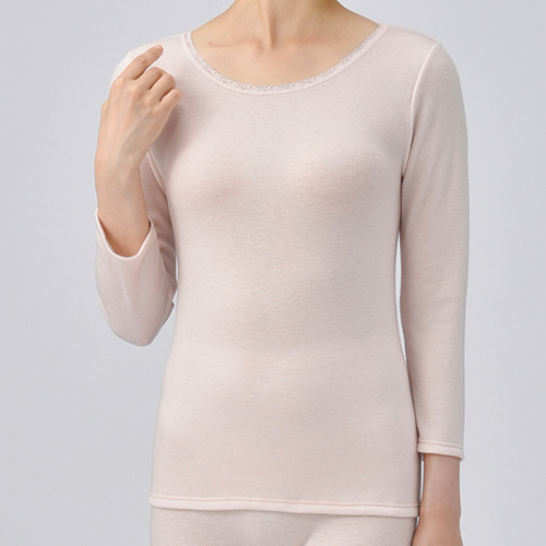 ぽかっぽか裏起毛8分袖インナー ピーチLL