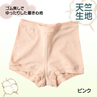 ゴムを使用していないソフトなフィット感のショーツです。股上深めでお腹もお尻もやさしく包みます。フラットな縫い目や、タグの外付けなど肌に優しい工夫がしてあります。伸縮性のよい天竺生地を使用しています。