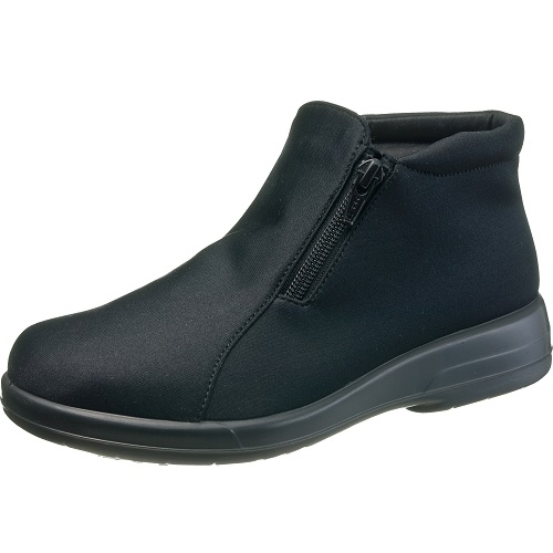 サイドファスナー付で、履き口が大きく開き脱ぎ履きしやすいつま先ゆったり、ショートブーツ。優れた防水耐久性と透湿性の高い機能素材「ゴアテックスファブリクス」を採用しており雨の日も快適です。グリップ力を発揮するガラス繊維と特殊なラバーを独自の製法で配合し氷上や滑りやすい床にも対応したオールラウンド対応ソールです。