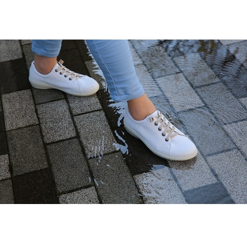 靴ひもは結ぶ必要のないゴムタイプでスリッポンのように脱ぎ履きが簡単です。優れた防水耐久性と透湿性を兼ね備えたゴアテックスファブリクス。雨や雪の日でも靴のなかを濡らすことなく、ドライで快適な環境提供します。グリップ性に優れた特殊ラバーに繊維状のセラミック粒子を配合しました磨きこまれた床や凍結した路面などでその効果を発揮。滑りにくく快適な歩行の為のソールです。