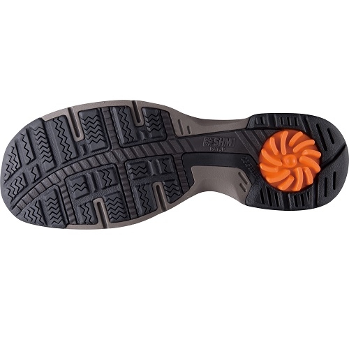 踵部のスクリュー構造の働きで衝撃を分散吸収し歩行をサポートするSHM機能搭載のウォーキングシューズです。アッパーはレザーを使用。
