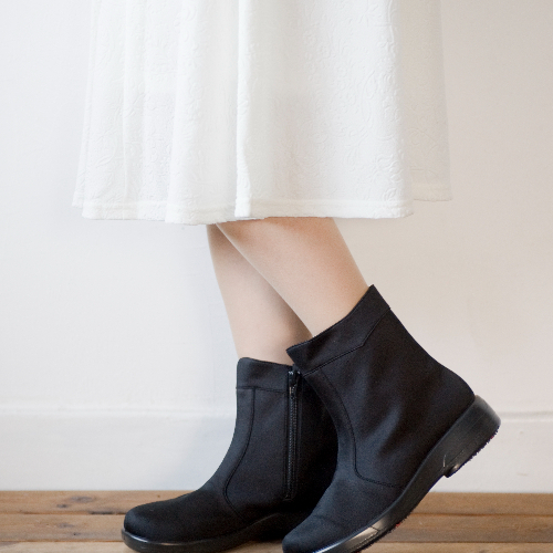 アッパー:ポリエステル、底:合成底(ポリウレタン+ラバー)足囲:3E、踵高さ:4cm、筒丈:14.5cm重量:305g(23.5㎝片足)日本製 ※ポリウレタン底について注意:ポリウレタン底は経年変化により劣化する事があります長期保管はお避けください。