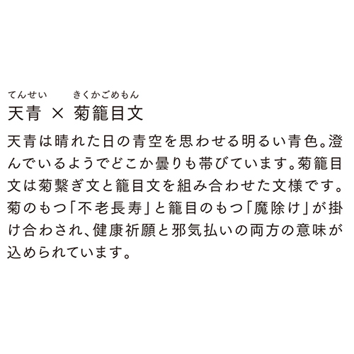 ●ポリエステル100%(ペットボトル再生素材)、グラスファイバー、アルミ、合板●親骨サイズ:60cm●24本骨傘●傘の直径:103cm●全長87.5cm●470g●UVカット率:90%以上●天青×菊籠目文●中国製