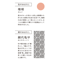 ●ポリエステル100%(ペットボトル再生素材)、グラスファイバー、アルミ、バンブー●親骨サイズ:50cm●12本骨●傘の直径:88cm●全長68cm●295g●遮光率100%※JISL1055 A法による生地の測定値●UVカット率100%※JISL1925による測定値●珊瑚×網代亀甲●中国製