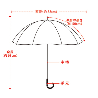 ●ポリエステル100%(ペットボトル再生素材)、グラスファイバー、アルミ、バンブー●親骨サイズ:50cm●12本骨●傘の直径:88cm●全長68cm●295g●遮光率100%※JISL1055 A法による生地の測定値●UVカット率100%※JISL1925による測定値●翡翠×ちどり●中国製