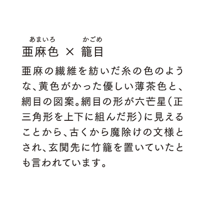 ●ポリエステル100%(ペットボトル再生素材)、グラスファイバー、アルミ、バンブー●親骨サイズ:50cm●12本骨●傘の直径:88cm●全長68cm●295g●遮光率100%※JISL1055 A法による生地の測定値●UVカット率100%※JISL1925による測定値●亜麻色×籠目●中国製
