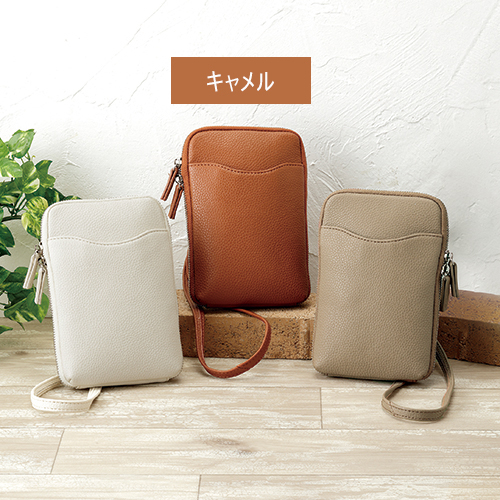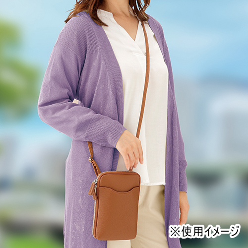 ●表側:合成皮革、内側:ポリエステル●縦19×横13×厚2.5cm●160g●開閉部:ファスナー式、内面:オープンポケット×1、ファスナーポケット×1、カードポケット×3、表面:オープンポケット×1、背面:オープンポケット×1、カードポケット×1●ショルダーストラップ長:68〜130cm(調整可能)●中国製※ストラップ取り外し不可。※摩擦や濡れによる色落ち・移染がある場合があります。