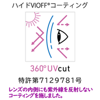 ●レンズ:光学用プラスチック(ハイドVIOFFコート)、フレームフロント:βチタン(チタン製合金)、フレーム耳部分:CP、ケース:EVA樹脂、スチール(ファスナー部)、眼鏡拭き:マイクロファイバー(ポリエステル50%、ナイロン50%)●幅14.5×高さ3.8×つるの長さ13.6cm(フリーサイズ)、レンズ:横6.3×縦3.8cm、ケース縦9×横16.5×高さ6.8cm●14g●収納用セミハードケー