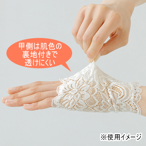 シワ・シミ・血管の浮きを隠し、手元をおしゃれに演出します。レースでありながら、甲の部分はUVカット率96%で、紫外線対策にも。指先が出ているので細かい作業もできて便利です。