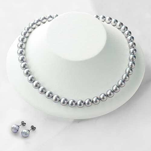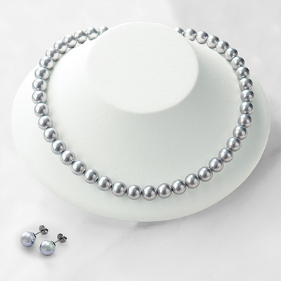 珠のつなぎは本真珠で行われている本結び「引き戻し式」を採用しているのでとても丈夫な作りになっています。ネックレスの留め具は差込式。ピアスは金属アレルギーになりにくいチタン製を使用。