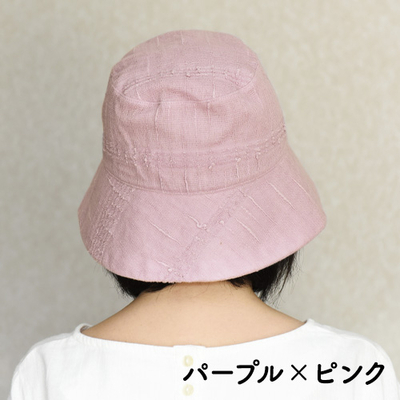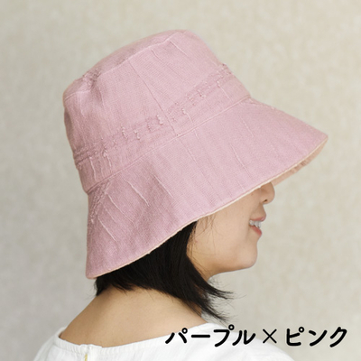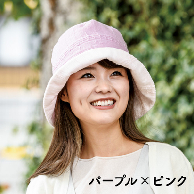 たおるの帽子・つば広タイプ(パープル/ピンク)