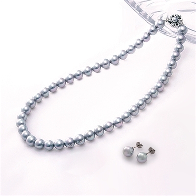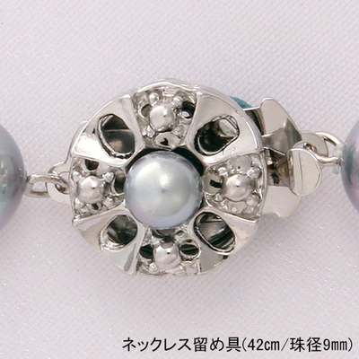 ●珠:貝パール(人工真珠)、留具(差込式):真鍮(代用ロジウムメッキ)、ピアスポスト:チタン●珠:径9mm、ネックレス:全長42cm、内周41cm、ピアス:2×0.9cm●ネックレス55g、ピアス1.3g(1個)●日本製