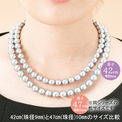 花珠真珠の品質をめざして作り上げた貝パール。首周りのサイズに合わせて選んで