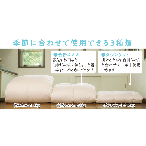 季節に合わせて使用できる3種類の羽毛ふとん