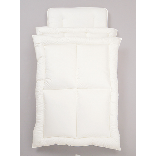 ■掛・肌・敷共通●側地/綿70% ポリエステル30%ツイル■掛・肌●サイズ95cm×120cm●中綿/ポリエステル100%(東洋紡コンフォロフト)●中綿重量/掛0.6kg 肌0.3kg■硬敷●サイズ/70cm×120cm●中綿/中芯:ポリエステル100%(硬綿) 巻綿:ポリエステル100%(東洋紡コンフォロフト)●中綿重量/1.6kg●日本製