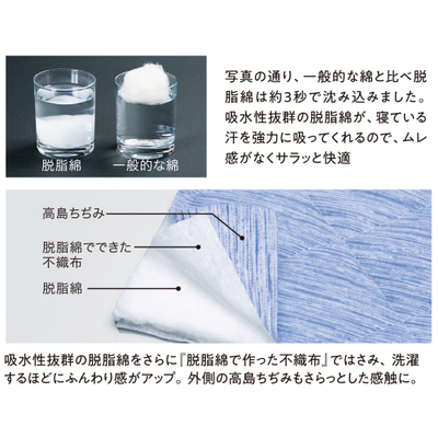 高島ちぢみ脱脂綿肌ふとん シングル ブルー