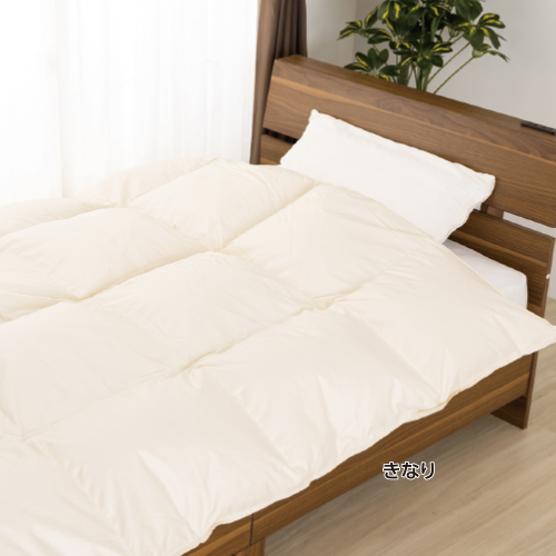 ●側地/超長綿100%サテン(80番手/405本) ダウンプルーフ加工 立体キルト加工●足し羽毛/ホワイトマザーグースダウン95% スモールフェザー5%(プレミアムゴールド/かさ高18.0cm ダウンパワー440cm3/g)300g●側サイズ/150cm×210cm●日本製