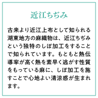 近江ちぢみのシボ加工が生地の硬さを和らげ、さらりとした肌ざわりとリッチな感触。