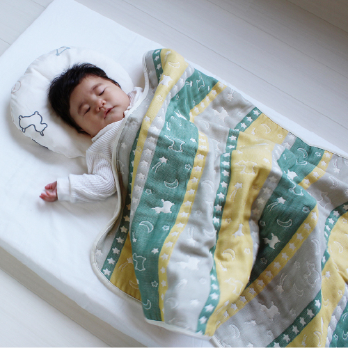 トップ > 寝具・タオル > 三河木綿6重ガーゼベビーケット グリーン/イエロー