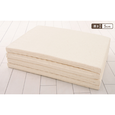 ●側地/ポリエステル55% 綿30% レーヨン10% その他5%●中身/中空高反発ポリエステル100%(上層:プロファイル〈凸凹構造〉 下層:平板〈フラット構造〉)●サイズ/136cm×195cm●厚さ5cm●中身重量/4.6kg●日本製
