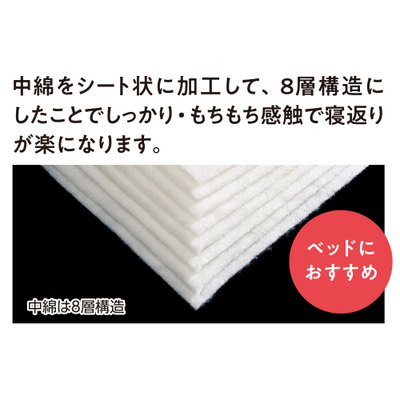 中綿をシート状に加工して、8層構造にしたことでしっかり・もちもち。