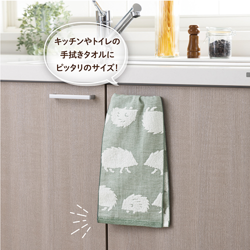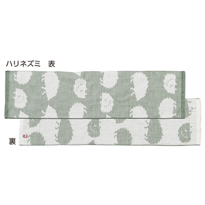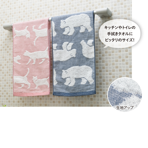 柔らかくて吸水性がよい薄手の今治タオルにネコ、ハリネズミ、クマをジャカード織で表現。