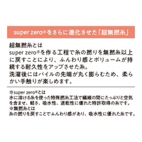 特殊撚糸super zero(R)をさらに進化させた無撚糸以上の「超無撚糸」。super zero(R)の特徴はそのままに、毛羽落ちや耐久性を改善しました。さらにパイル部分にはオーガニックコットンを使用し、織り方にもこだわっています。