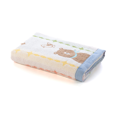 スカーフと蝶ネクタイをつけたおしゃれなねこ、くま、うさぎのタオルです。糸を撚らずに無撚糸で作られているのでふわふわの肌ざわり。