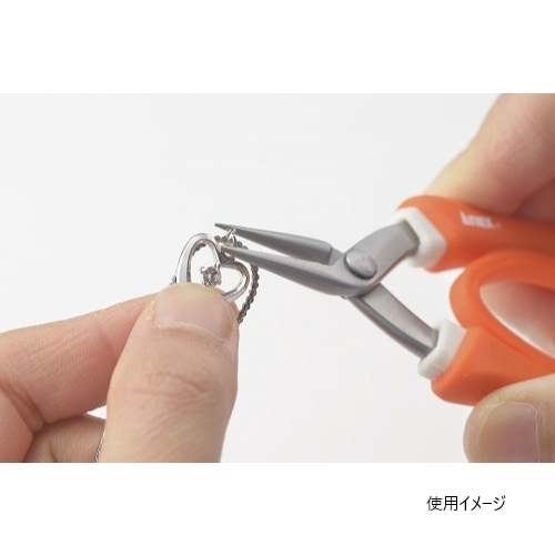 アクセサリーの補修に、ネックレスなどのチェーン補修に。手にやさしいラバーグリップで滑りにくくピッタリフィット、作業が楽に出来ます。先が丸と半丸の組合せでアクセサリーチェーンの微妙な調整も楽に出来る。
