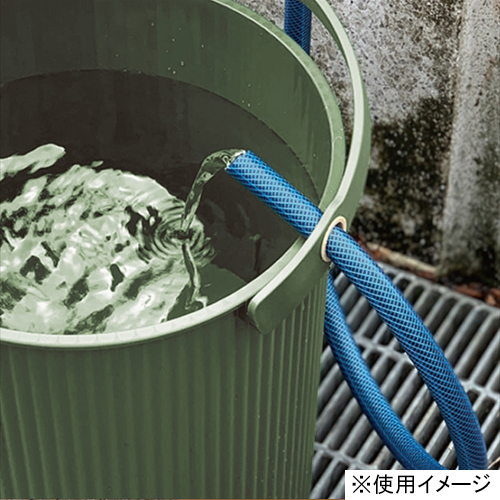 フタをして腰掛としても使用できるバケットです。ガーデニングの道具や余った肥料などの収納として使用できます。ホース固定リング付きで水ためラクラク。ホース径2cmまで対応。