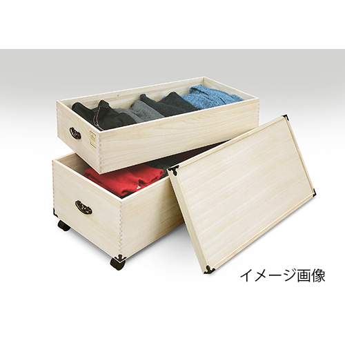 ●側板:天然木(桐集成材)、天板・底板:天然木化粧合板(桐材)、金具:スチール・亜鉛ダイキャスト、キャスター:ナイロン、中国産の桐使用、表面加工:木地仕上げ●幅82×奥行41.5×高さ53cm (キャスター含む)、内寸:[小]幅79.5×奥行39×深さ16cm、[大]幅79.5×奥行39×深さ24.5cm●重量7kg●耐荷重各段5kg●キャスター4個●日本製※キャスターのみ取付