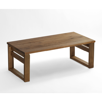 落ち着いた風合いで仕上げたマルチに使える小机。四つ脚に比べて地面に接する面積が広いので、重みが1点に集中せず、置いても跡が残りにくくなっています。