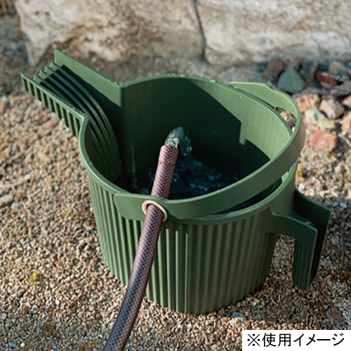 ハス口が無くてもシャワー状の優しい水やりができる画期的なデザインのジョウロです。バケツにもなるので水溜めも便利。ハンドルには水ホースを通すリング付き。本体内側には液体肥料などの希釈用メモリがあります。