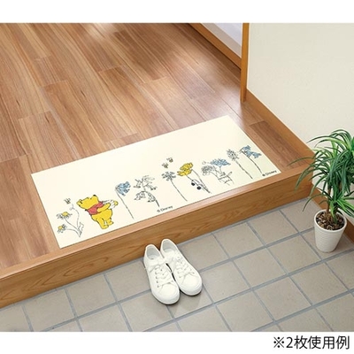 貼るだけでピタッとズレないマット。洗濯機で洗える、大人かわいいプーさんマット。撥水加工を施しています。掃除機をかけても吸い上がらず、楽にお掃除できます。