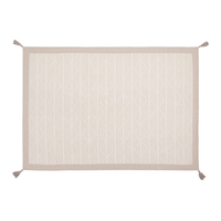 インド綿ならではの素朴な仕上がりが魅力のラグ。適度に厚みがあるので床に敷いても安定感よく収まります。
