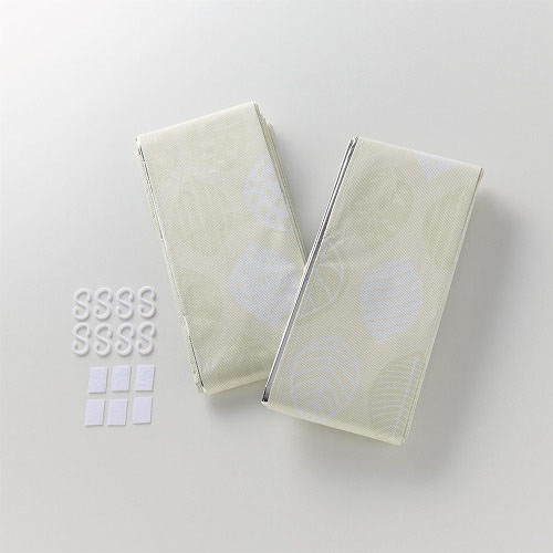 ●スクリーン2枚:PETアルミPEコーティング(アルミ蒸着フィルム)・PP不織布・PP、S字フック8個:PP、面ファスナー3セット:ポリエステル(アクリル系粘着剤)●1枚当り90×210cm(2枚組)●1枚当り205g●遮光率98%、UVカット率94%●中国製 ※網入りガラスや複層ガラス、合わせガラスには使用できません。