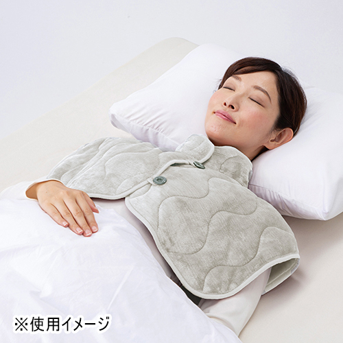 就寝時に布団の隙間から入ってくる冷気。そんな時の首や肩の冷えを防止します。首から背中まですっぽり包み込みます。